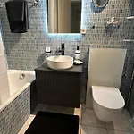 Das Apartment mit Blick auf den Garten verfügt über eine Klimaanlage sowie WLAN und einen Flachbildfernseher mit Satellitenkanälen für einen angenehmen Aufenthalt. Die Unterkunft ist auch mit einem Sofa und einem Schreibtisch ausgestattet. Zur Badezimmerausstattung gehören eine getrennte Toilette und eine Badewanne. Ein Haartrockner und Handtücher sind ebenfalls vorhanden.